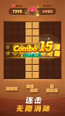 Woodblast的乐趣远不止于此。渴望探索新奇?步入『旅行冒险』模式,环游世界,在精心设计的谜题中解锁各地风光,并亲手打造专属的影像画廊。若想每日唤醒大脑活力,『脑力训练』模式将提供持续更新的独特挑战,只需片刻投入,即可保持思维敏锐。更令人兴奋的是,游戏鼓励玩家追寻连击的快感——巧妙规划,一次性消除多行或多列,将触发炫酷的Combo效果,带来成倍的积分奖励,让每一次爆发都充满成就感。这款匠心之作完全免费,并且支持离线畅玩,无论身处何地,都能随时随地沉浸在木块的世界里。