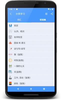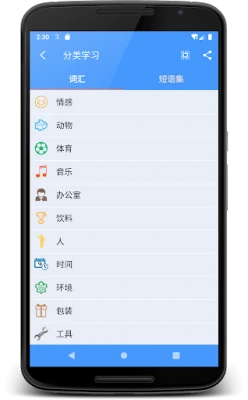 核心的学习模块专注于构建坚实的词汇和短语基础。应用内包含数十个精心分类的主题词汇和常用短语,均配有地道的真人发音,确保您能精准学习每个单词和句子的正确读法与含义。无论是通过直观的列表模式还是沉浸式的卡片模式,您都可以根据个人喜好选择最适合的学习方式。此外,独特的录音对比功能将助您反复练习,即时纠正发音,从而显著提高口语表达的准确性和听力理解能力。