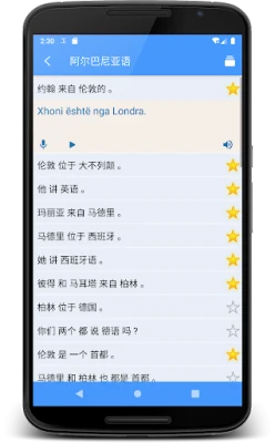为了全面巩固您的学习成果,"学习阿尔巴尼亚语"特别设计了模拟考试功能,助您定期自我评估,清晰了解学习进度。遇到不熟悉的词句?内置的在线翻译工具能即时为您在源语言与阿尔巴尼亚语之间提供便捷转换,其中多数翻译更支持在线发音。更有实用的收藏夹功能,让您随时标记重点内容,方便日后回顾。本应用界面简洁美观,操作流畅,更支持离线使用,无论身处何地,都能随时随地投入到阿尔巴尼亚语的学习中,尽享无缝衔接的语言体验。